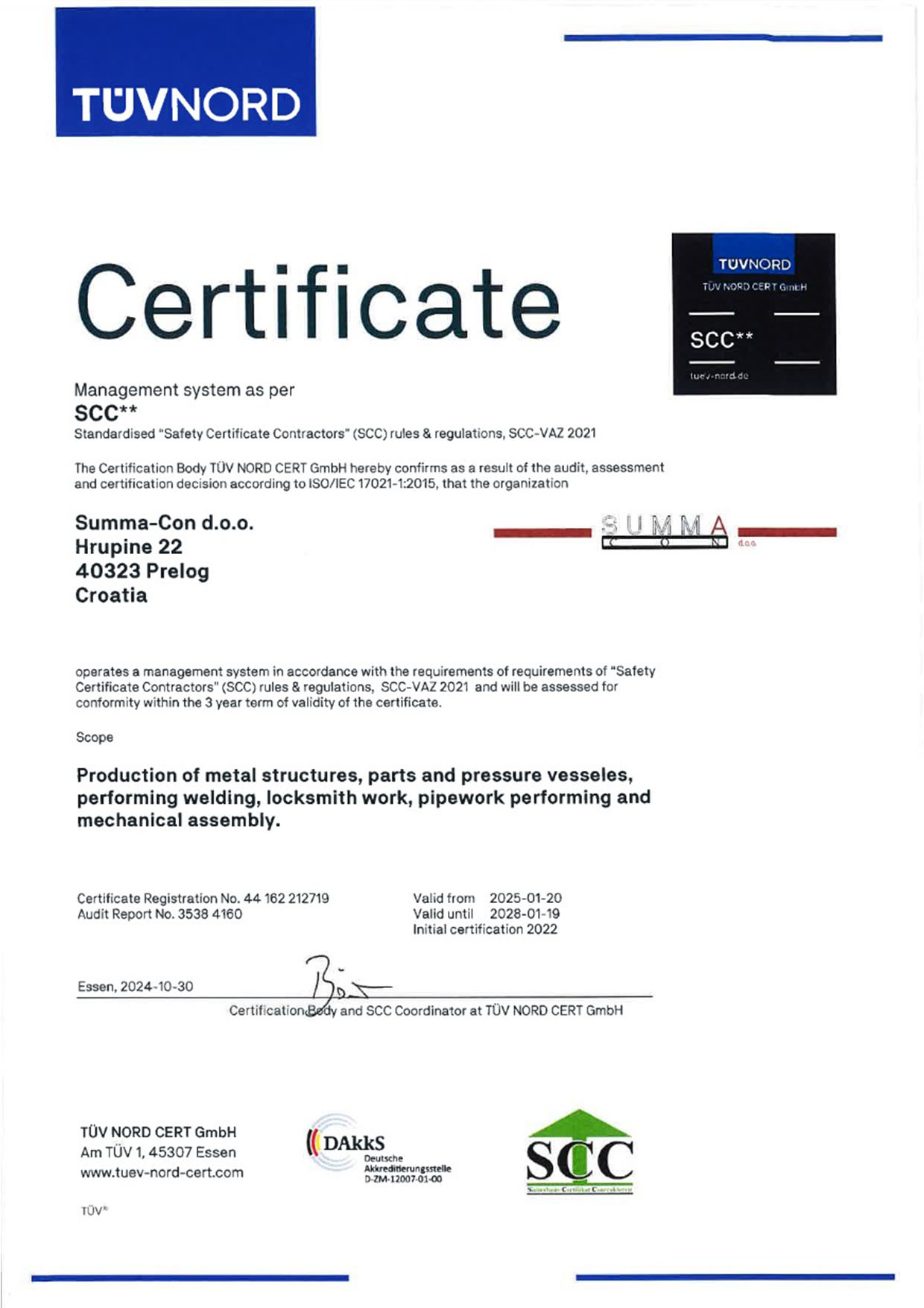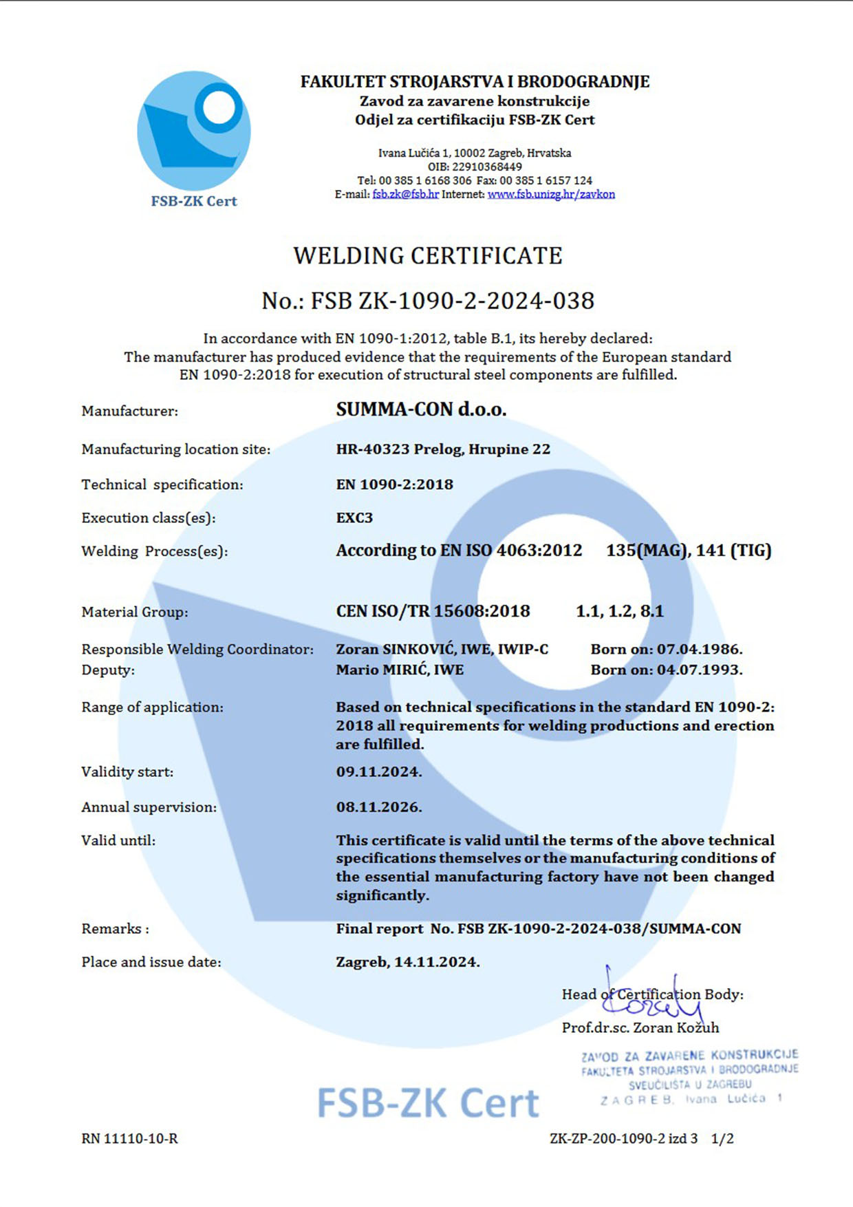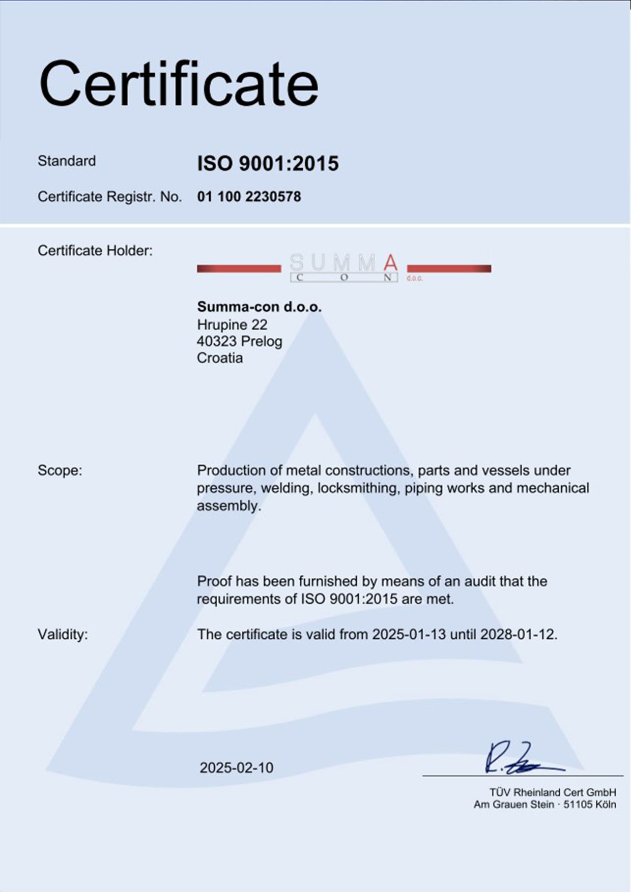 Summa-con d.o.o. proizvodnja metalnih konstrukcija i njihovih dijelova.