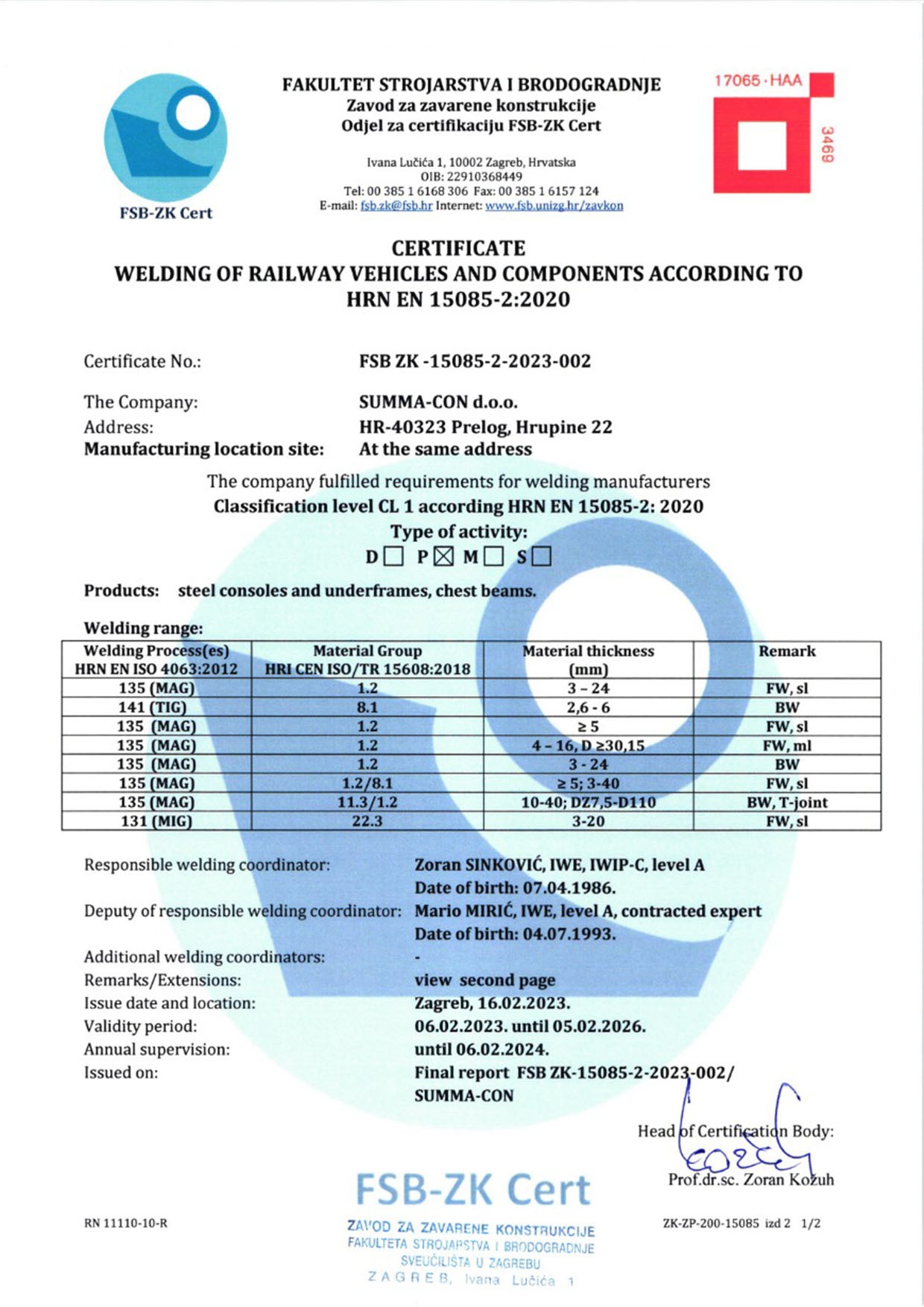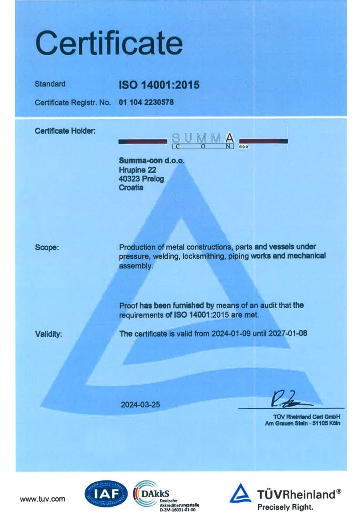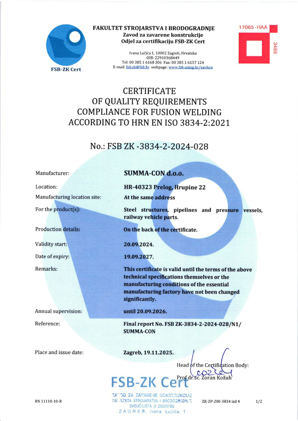 Summa-con d.o.o. proizvodnja metalnih konstrukcija i njihovih dijelova.